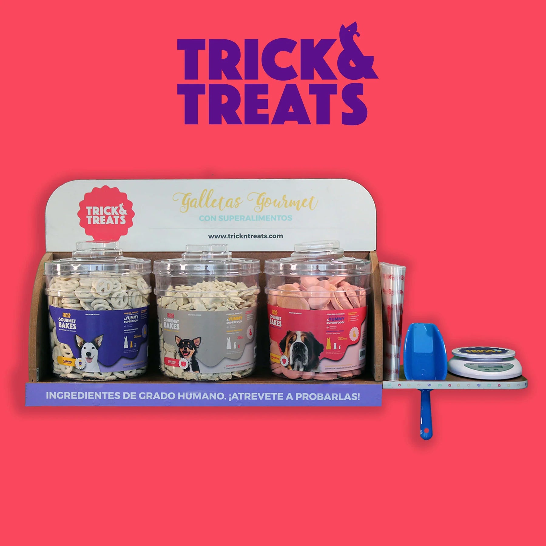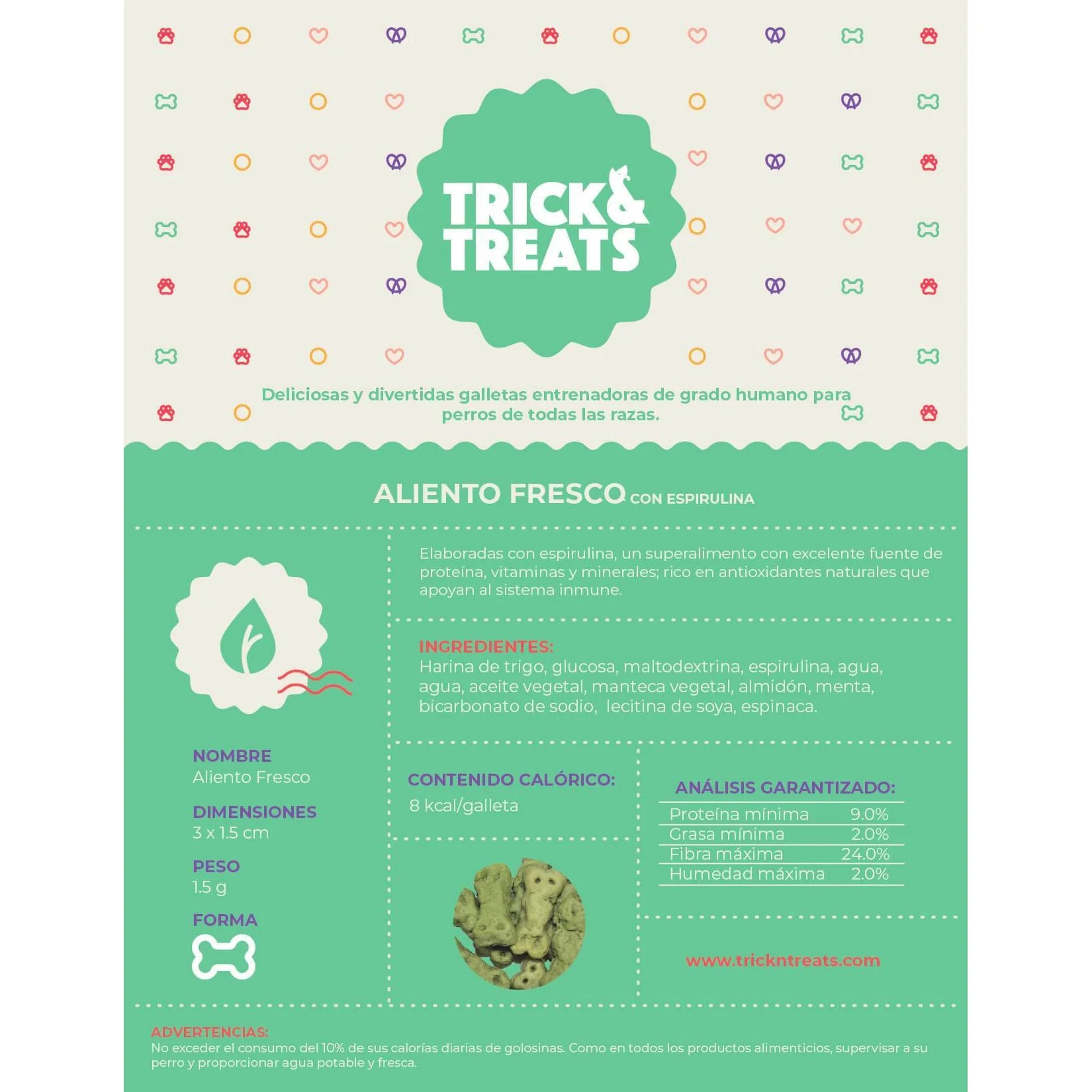 Las galletas gourmet para perros Trick & Treats, son 100% de grado humano y con super alimentos como la espirulina, cúrcuma y jengibre.